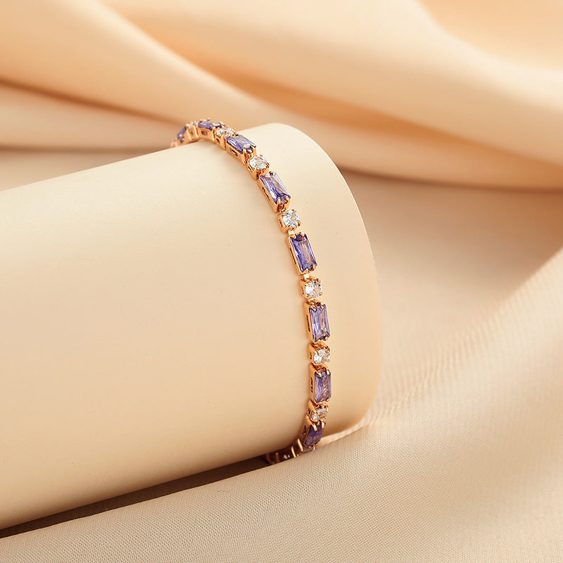 Add a touch of elegance to your everyday look with this luxurious purple crystal tennis bracelet.